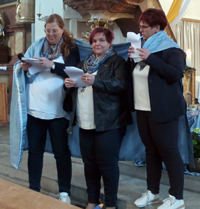 Die Frauenbundfrauen trafen sich zu einer Maiandacht in unserer Pfarrkirche. Der Effatasingchor umrahmte die Andacht musikalisch. Anschließend begaben sich alle im Pfarrheim zur Jahreshauptversammlung mit Ehrungen. Unsere Bezirksvorsitzende, Maria Altendorfer, nahm ebenfalls an unserer Versammlung teil. Sie begrüßte alle Frauen des Frauenbundes recht herzlich. Nach dem Totengedenken und den einzelnen Berichten wurden die langjährigen Mitgliederinnen geehrt. Schriftführerin Petra Wohlstreicher zeigte viele Bilder des Vereinslebens in einer Power-point-Präsentation.